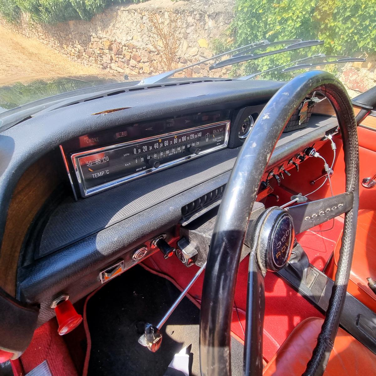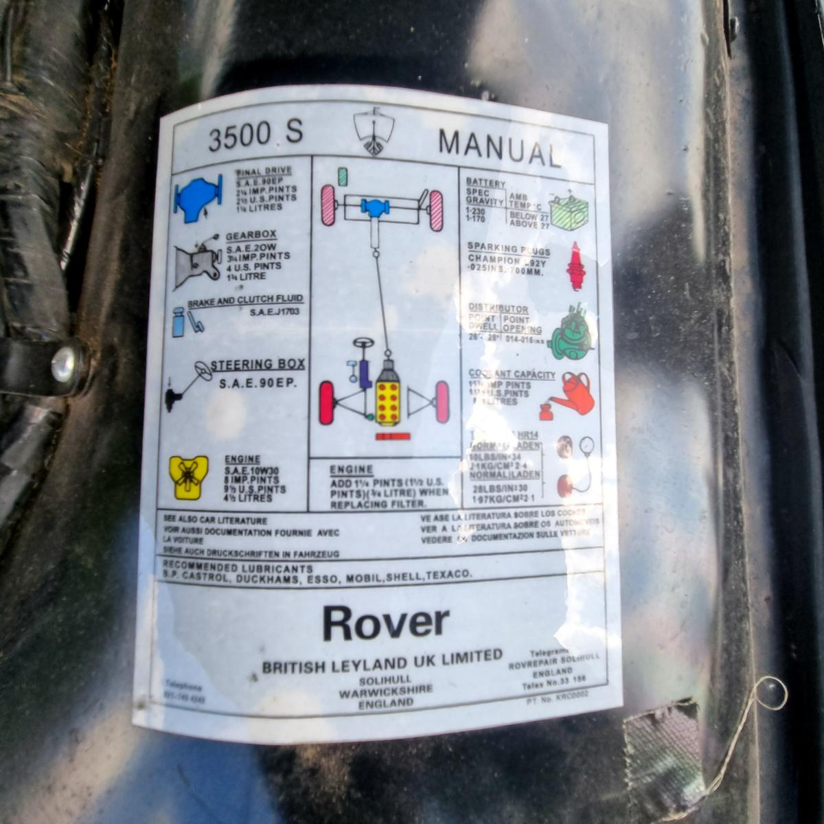 Generell sind die Rover P6b 3500 V8 die am besten durchkonstruierten britischen Autos, die je gebaut wurden. Alles ist wohldurchdacht und auf hohe Geschwindigkeit gepaart mit hoher Lebensdauer und absoluter Insassensicherheit konstruiert. Alle Blech- und Aluteile, ja sogar das Dach die C-Säulen und die hinteren Kotflügel lassen sich mit wenigen Schrauben vom Monocoquerahmen lösen. Crashzonen vorne und hinten sowie eine Sicherheitslenksäule samt Sicherheitsgurten auf allen Sitzplätzen waren von vorne herein vorgesehen. Vierradscheibenbremse und Einzelradaufhängung und DeDion-Hinterachse rüsten den schnellen Wagen gut für seine einem zeitgenössischen Porsche ähnlichen Fahrleistungen. Die Zuverlässigkeit und unbändige Kraft des 3,5 Liter V8-Motors machen das Fahren auch auf langen Strecken zu einem Vergnügen. Dieser Wagen der ersten Serie mit dem seltenen Chrom-Grill und dem hübschen Bandtacho, wurde im Lauf seines Lebens von einem Automatikgetriebe auf eine sportliches 5-Gang-Schaltgetriebe umgerüstet. Bei einer älteren Restaurierung vor etlichen Jahren erhielt der Wagen passend zur stark patinierten roten Lederausstattung eine tiefschwarze, ordentlich ausgeführte Komplettlackierung. Der Wagen weist hier und da Patina auf.